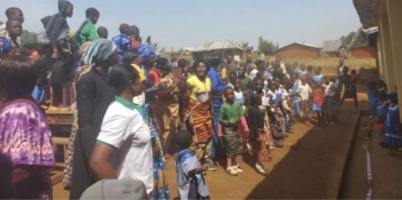 This project has not been the easiest to undertake. The village of Moh in Nkambe, NW Region, is very remote at the best of times but the political crisis in that region, combined with torrential rains which made roads impassable, meant that transportation of building materials to the school site was extremely difficult. Nonetheless, the community turned out in high numbers on 20th December to witness the handing over of this new school building – and there was great celebration!