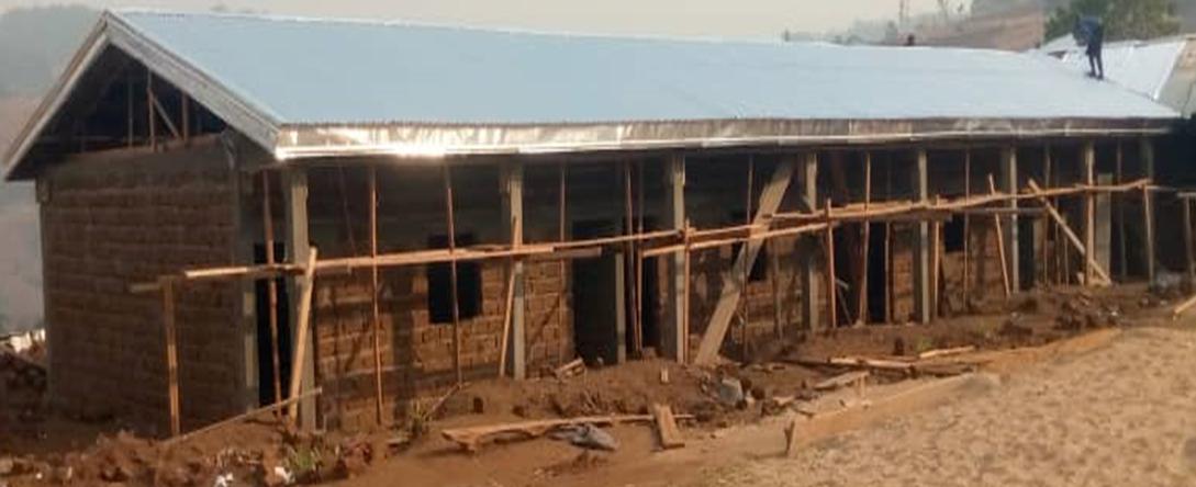It’s been almost ten years since we have been able to undertake a school building project in the rural parts of NW Cameroon. All government schools were closed due to the political crisis, but CS St Martin in Moh, being a mission school, was allowed to function. However, the number of children attending has fluctuated since the crisis started, with families fleeing the rural areas because of the violence, so essential income to the school has dropped. The school buildings, which were poorly constructed more than 30 years ago, have deteriorated beyond repair: roofs have been blown off in high winds and walls have collapsed. Desks became broken so children had to squeeze onto those few that remained usable: their work got damaged in the rains and they became very discouraged. The one small toilet at the school was also in a deplorable state which meant that neither the children nor the teachers wanted to use it, preferring to use the nearby forest area. The whole environment had become unhygienic and it was obvious that it was time for real investment.