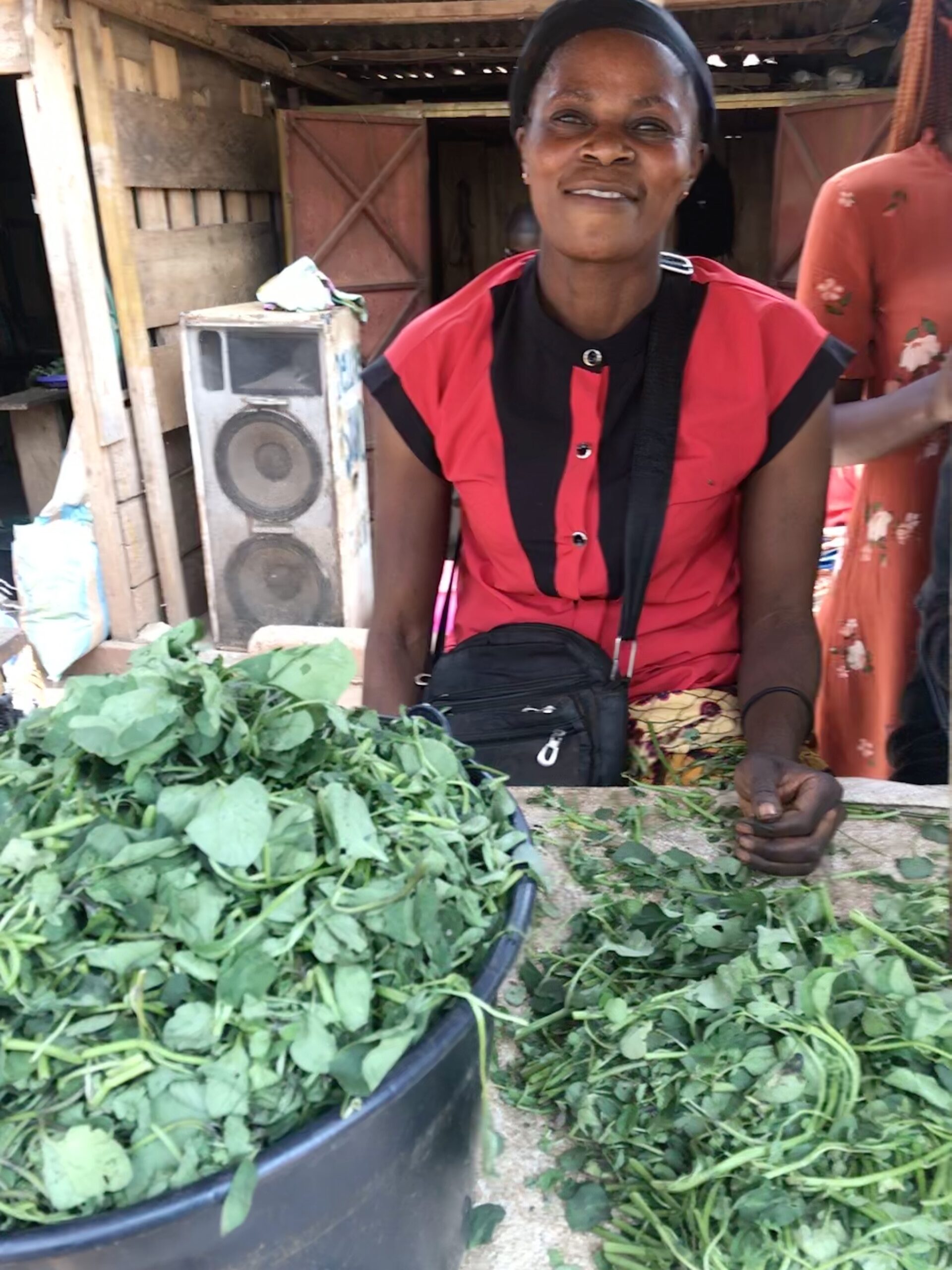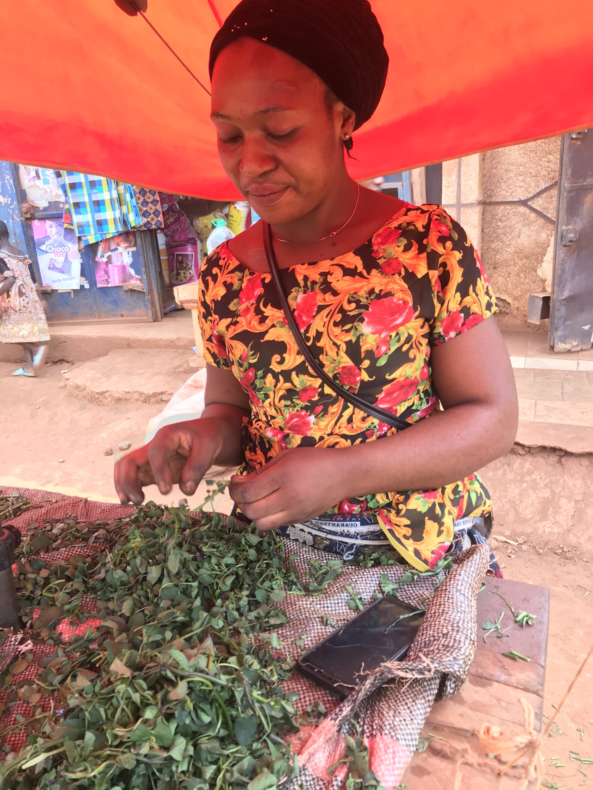 There is a community of IDPs from the northwest that work closely together in the market. They’ve all completed the SHUMAS training and have been set up with foodstuffs to sell at their stalls. Currently huckleberry is extremely popular and a best seller. Geroline, Geraldine and Emelinda are all from Kumbo, they all have children of school age and are now able to pay their children’s fees. Alimatu comes from Ndu and Assanah comes from Jakiri. All these women enjoyed the training and happily work together in the market area. Fresh huckleberry is brought by bus from the northwest and is considered to be high quality by anglophone’s in the area and brings in a good price.