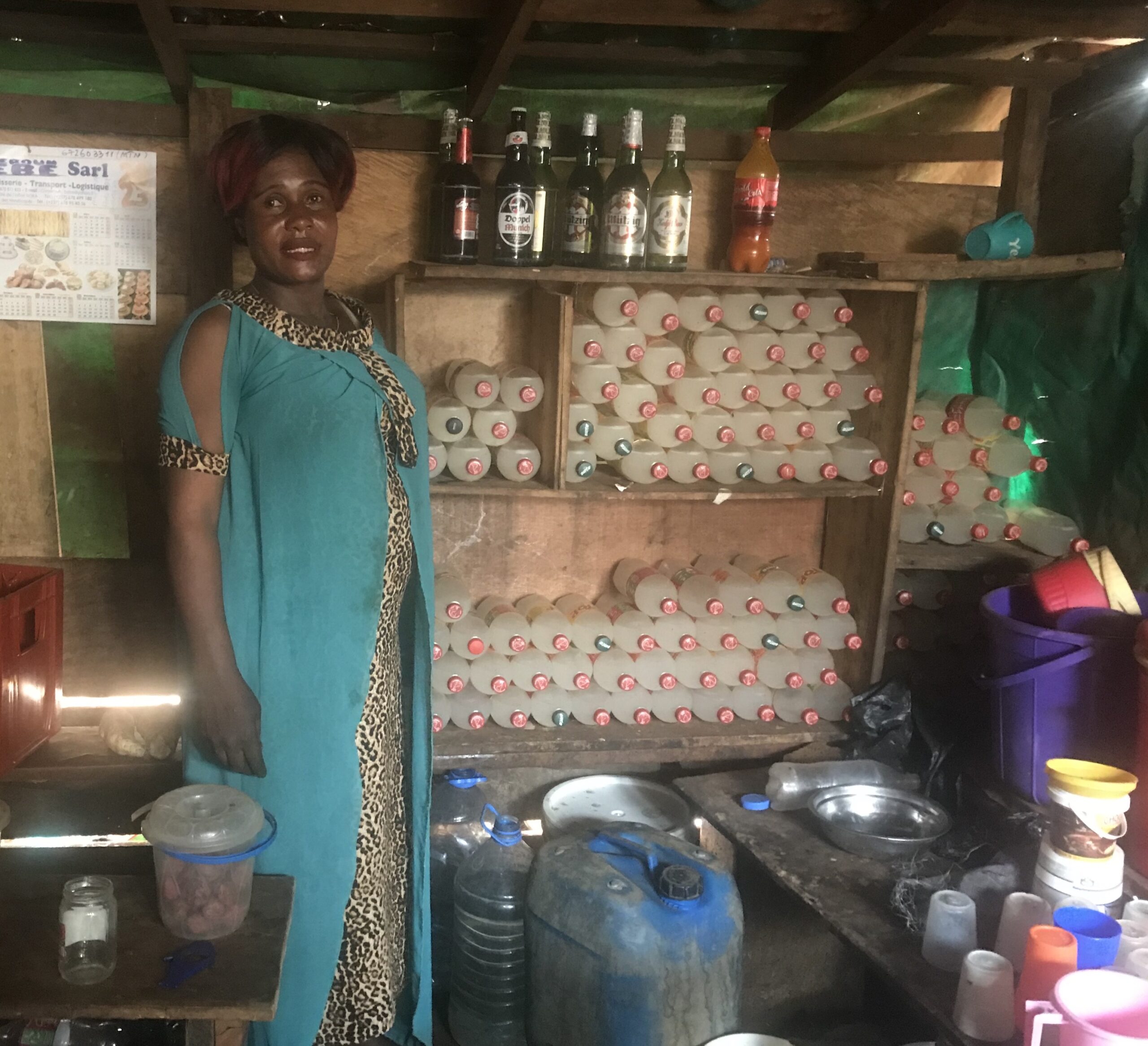 Mary from Kumbo and Comfort from Nkambe have both started small bars where they sell palm wine and corn beer. Both received other foodstuffs from SHUMAS following the training course and still stock these items but they have moved into making alcohol as a profitable sideline.