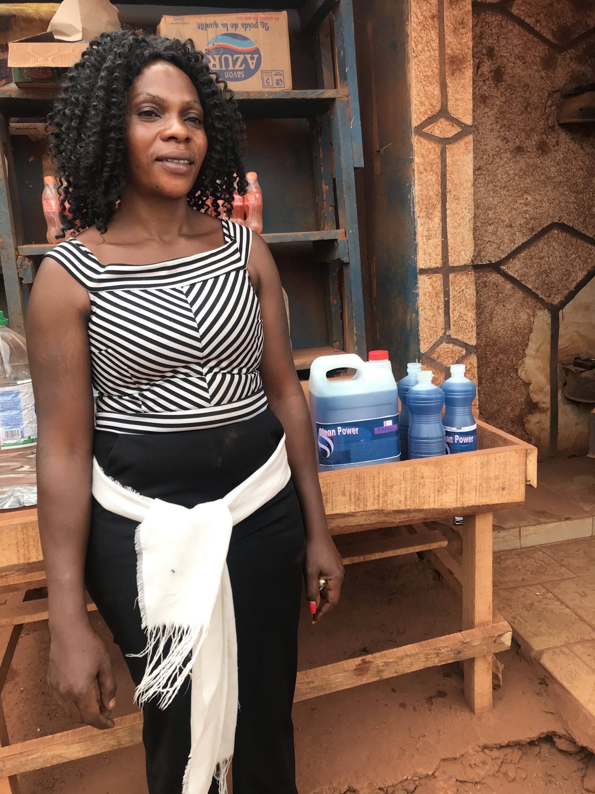 Her start-up materials were large containers of Palm Oil which she decants into litre bottles which she sells at a profit of 3,000 – 5,000 depending on the fluctuating cost. She is able to pay the rent (15,000 pm) on her one-room home and pay her children’s school fees. She says her landlord is a good man and lets her owe rent if the school fees are due. She occasionally is able to save 1000 CFA in her Credit Union account and saves 5,000 every 2 weeks at her women’s savings group.