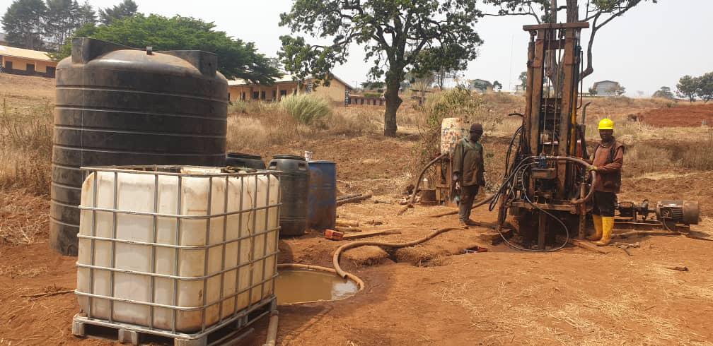 We have recently been able to provide funding for the drilling of a new borehole in Kumbo, NW Region, where the water system in the town has been broken for some time. The borehole  is located at the only secondary school which is still functioning since the start of the war, but it also provides water for the whole community in that area.  This school now takes all pupils who were previously attending 10 other Government schools locally – a total of 604 children, the majority of whom are girls.  In recent months, many of the pupils have suffered from malaria, typhoid or cholera because they have been drinking from contaminated water sources.  They have also been losing many hours of schooling by trekking in search of drinking water.  This will now be a thing of the past and a water committee has been set up to ensure the maintenance of the borehole and the solar pump.