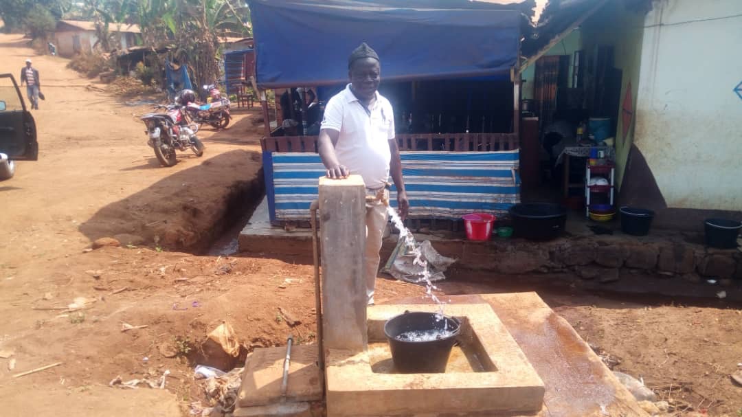 There is a new borehole is in Sodiko, a small town in the Littoral Region which now hosts many hundreds of the Internally Displaced families which have fled from the violence of the war in the NW and SW regions. It replaces one of the unprotected and dangerous wells in the town which, although 20m deep, still reached only impure water. The new borehole with electric pump reaches pure water at a depth of 60m which is then filtered and stored in an 1800 litre tank feeding two taps. This borehole now provides clean drinking water to over half the community including pupils at two schools.