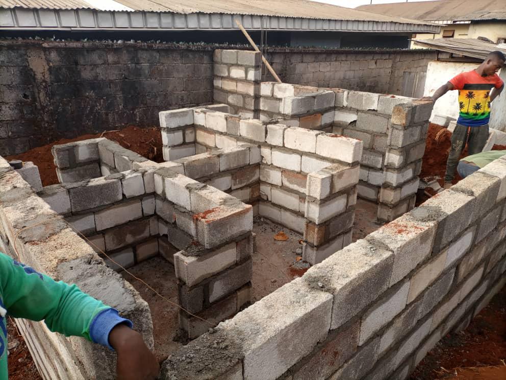 - Building the toilet walls