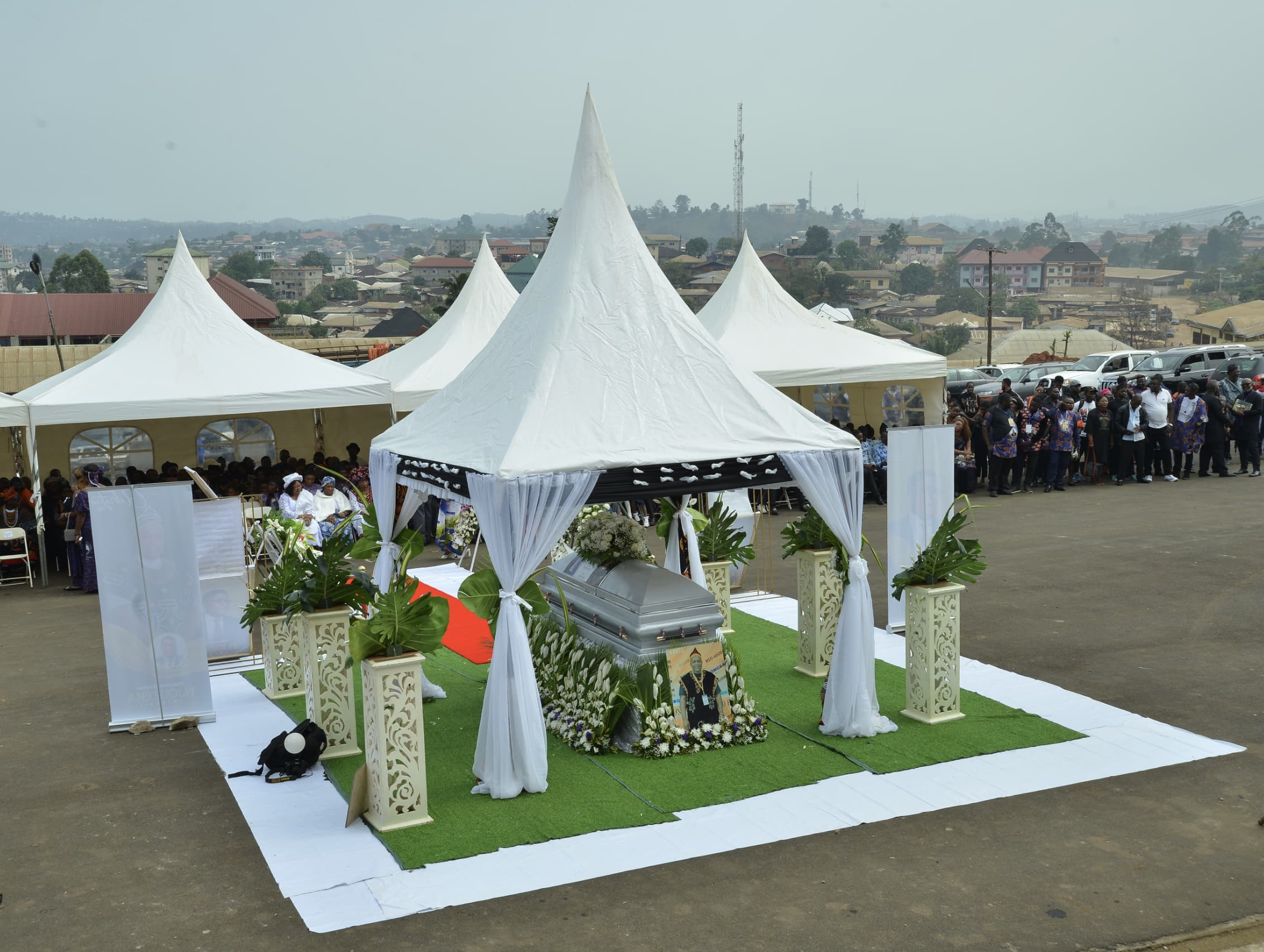 It is hardly surprising, therefore, that his funeral was a huge occasion, with over 2000 people, from every corner of Cameroon, in attendance. Catholic Masses were celebrated every day for a week, culminating in the funeral itself, which was an extraordinarily moving occasion, both solemn and joyful. Stephen’s coffin lay in state while the mourners gathered to say their farewells, and was draped in the flag of Cameroon before the Governor of the NW Region presented a posthumous award of Officer of the Order of Valour.